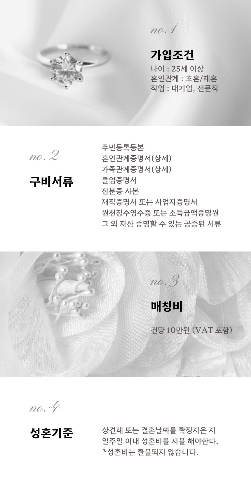 만 19세 미만인 경우, 결혼이 불가능한 상태인 경우 혹은 회원 가입 시 제출한 정보가 사실과 다른 경우 등 가입 조건에 부합하지 않는 경우에는 회원 가입이 거절될 수 있습니다.